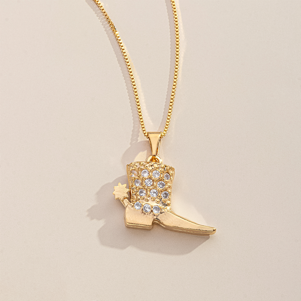 Colar Feminino Bota Cravejada Banhado a Ouro 18K