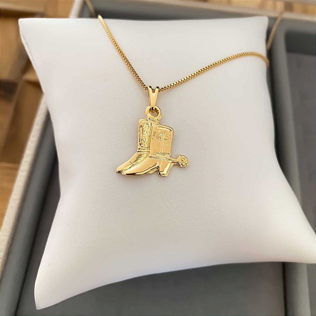Este colar feminino com par de botas country, banhado a ouro 18K, é perfeito para quem ama o estilo country e o universo equestre. Com detalhes refinados, ele transmite charme, sofisticação e paixão pela vida no campo.