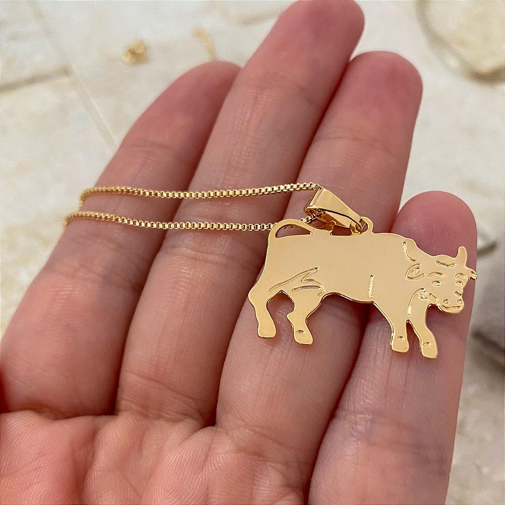 Colar feminino com o poderoso touro indomável, banhado a ouro 18K. Uma joia imponente e sofisticada, ideal para mulheres que amam o universo equestre e buscam expressar força e elegância através de seu estilo único.