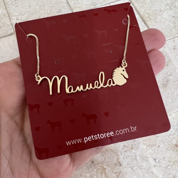 Colar Personalizado Manuela com Cavalo Banhado a Ouro 18k