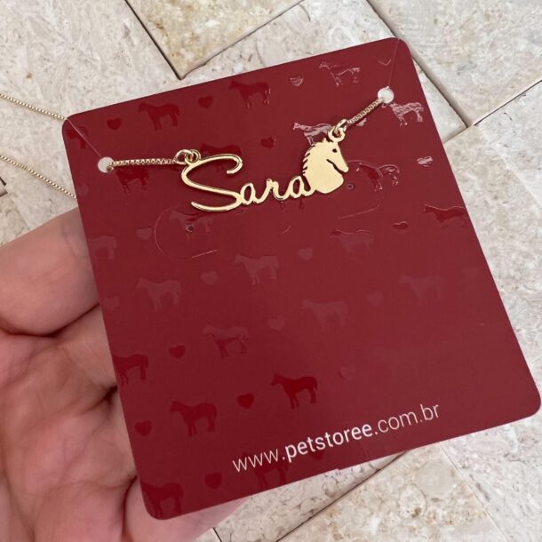 Colar Personalizado Sara com Cavalo Banhado a Ouro 18k