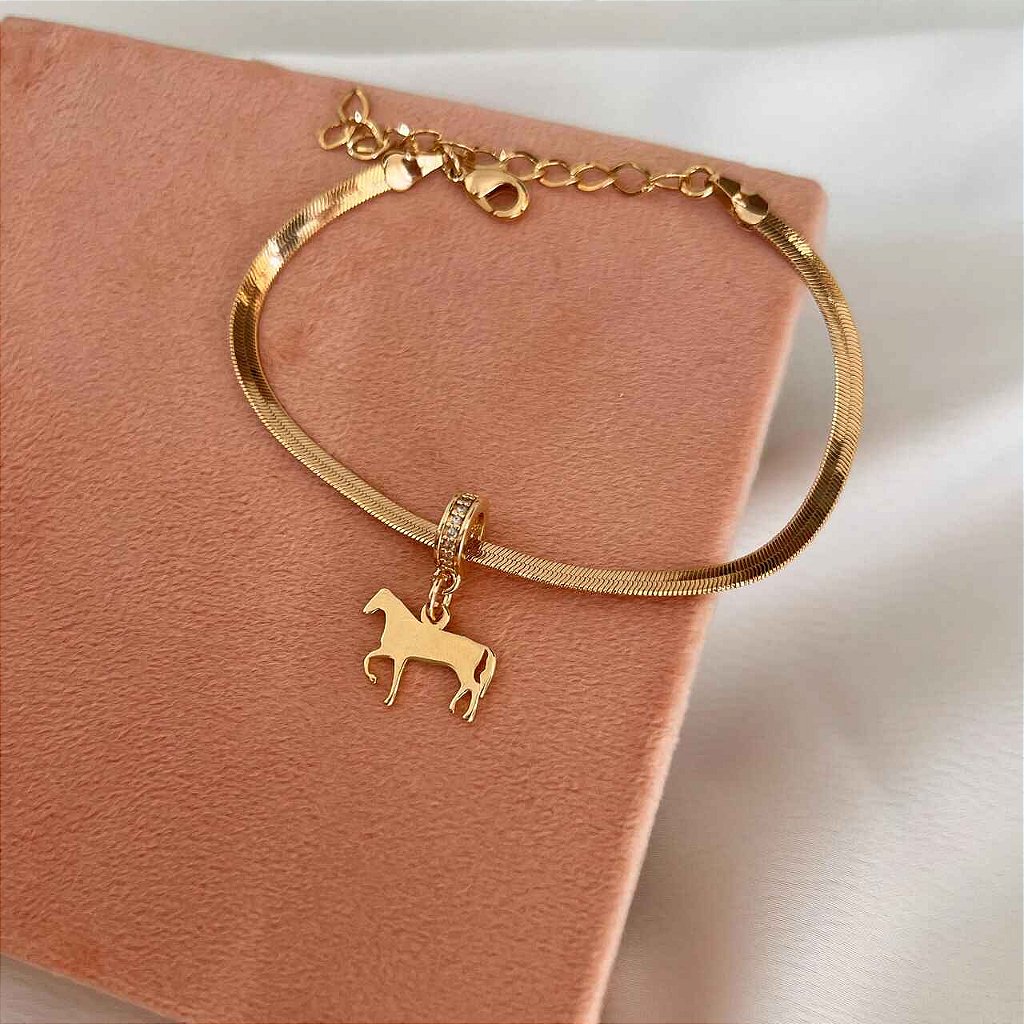 Pulseira Feminina com Fita e Berloque de Cavalo
