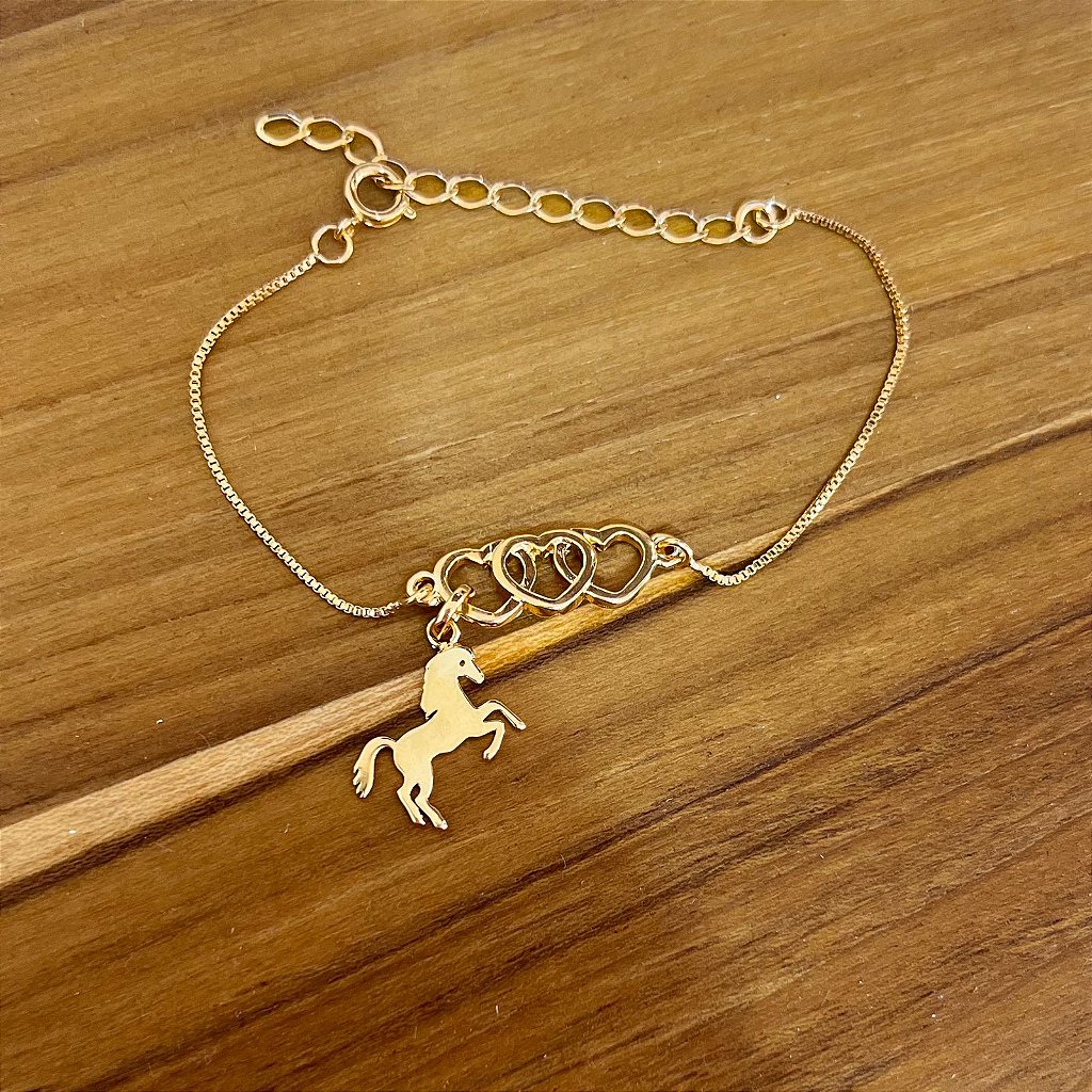 Pulseira Feminina Horse Coração Banhado a Ouro 18k