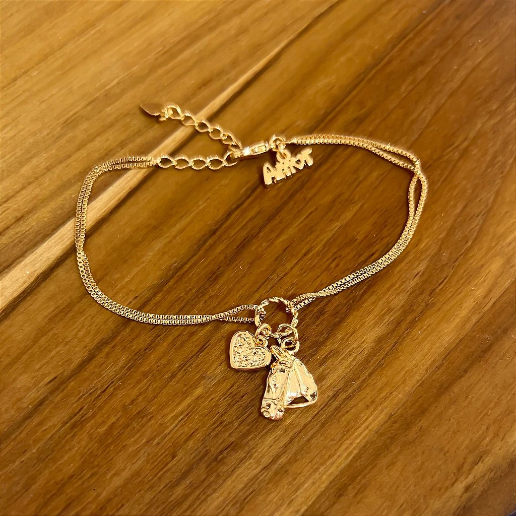 Pulseira Feminina Horse Rosto Coração Banhado a Ouro 18k