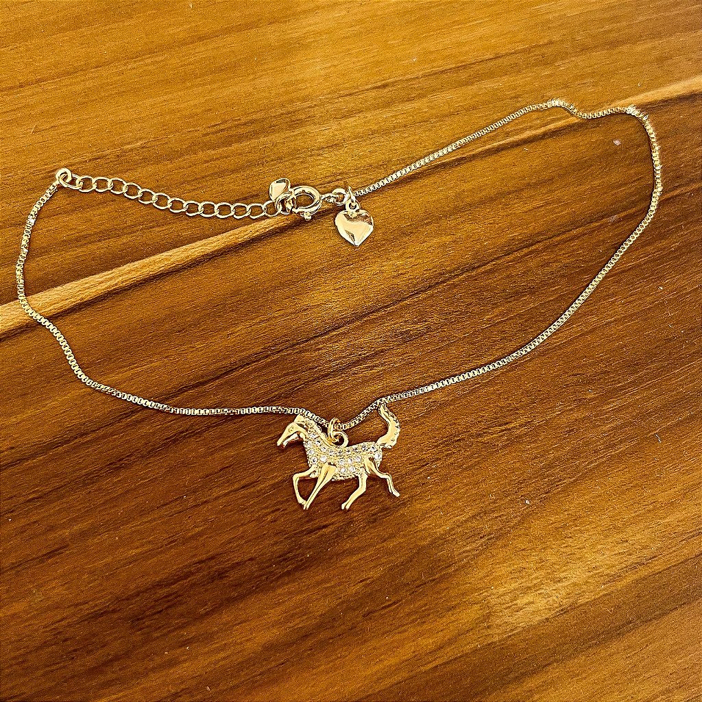 Tornozeleira Cavalo Zircônia Banhado a Ouro 18k